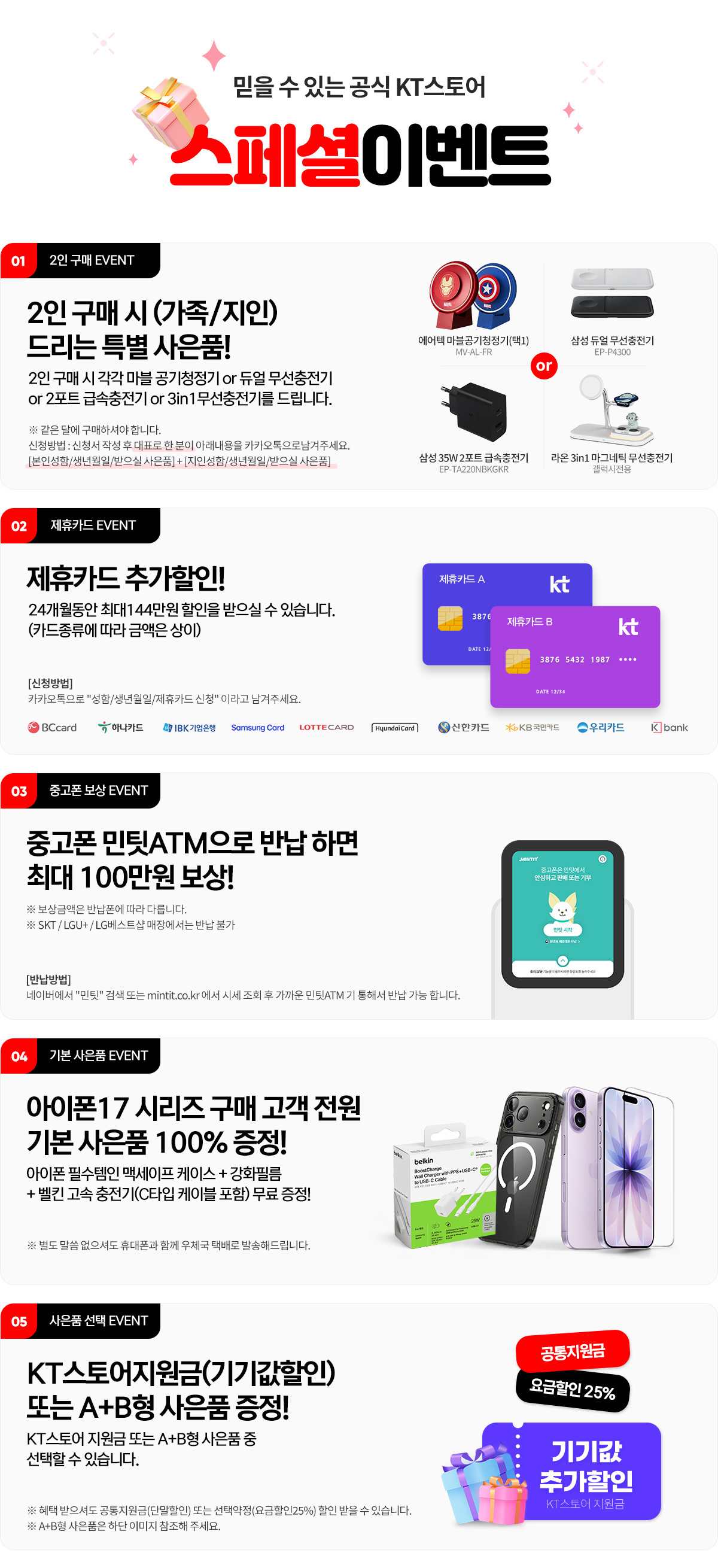 • 휴대폰 개통+카드 발급 후 KT고객센터(114)로 자동이체 등록하셔야 합니다. (개통 및 발급 순서는 상관없습니다. 먼저 발급받으셔도 됩니다.)